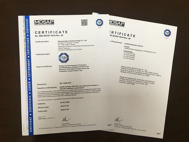 2019年1月23日,南通伊仕生物技術(shù)股份有限公司(以下簡稱“公司”,證券代碼:835749)收到了由南德意志集團(tuán)TüV 簽發(fā)的MDSAP證書,標(biāo)志著公司順利完成了MDSAP體系的國際質(zhì)量體系認(rèn)證。