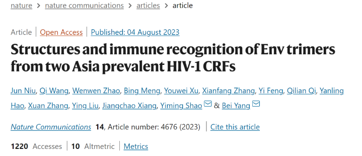 “免疫聚焦型疫苗策略”的開展不僅需要廣譜中和抗體抗原表位的指引,也需要對Env蛋白的結(jié)構(gòu)與抗原特征進(jìn)行全面掌握。當(dāng)前,針對Env蛋白的結(jié)構(gòu)與抗原特征研究均集中于在歐、美、非洲流行的A、B、C亞型,對于在亞洲尤其是我國占主導(dǎo)地位的流行重組亞型CRF01_AE和CRF07_BC則鮮有相關(guān)報道。此外,僅有極少數(shù)廣譜中和抗體從感染流行重組亞型的個體中分離,且它們的抗原表位與中和機(jī)制也尚未得到充分闡釋。上述信息的缺乏阻礙了我們對于流行重組亞型Env蛋白的結(jié)構(gòu)與免疫原性的認(rèn)識,也不利于免疫聚焦型疫苗研發(fā)策略在我國的開展及應(yīng)用,在此背景下,楊貝課題組與合作者開展了深入的研究。