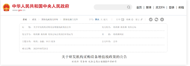 財政部 商務部 稅務總局關于研發(fā)機構采購設備增值稅政策的公告